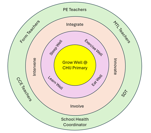 Grow Well @ CHIJ Primary initiative aims to support the nation’s direction in promoting national health through early intervention to shape healthy habits in our students from young. We hope to develop a community of learners who will take ownership in cultivating a lifelong healthy lifestyle.